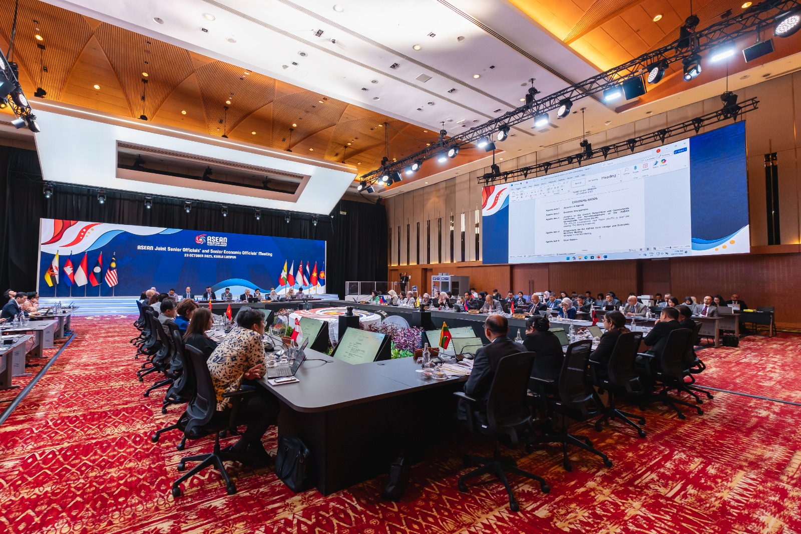 Direktur Perundingan ASEAN, Nugraheni Prasetya Hastuti, bertindak sebagai Alternate SEOM Lead Indonesia mewakili Direktur Jenderal Perundingan Perdagangan Internasional, Djatmiko Bris Witjaksono bersama-sama Direktur Jenderal Kerja Sama ASEAN, Sidharto R. Suryodipuro, selaku SOM Lead Indonesia memimpin delegasi Indonesia dalam ASEAN Joint Senior Officials’ and Senior Economic Officials’ (SOM-SEOM) Meeting di Kuala Lumpur, Malaysia, Kamis (23 Okt).