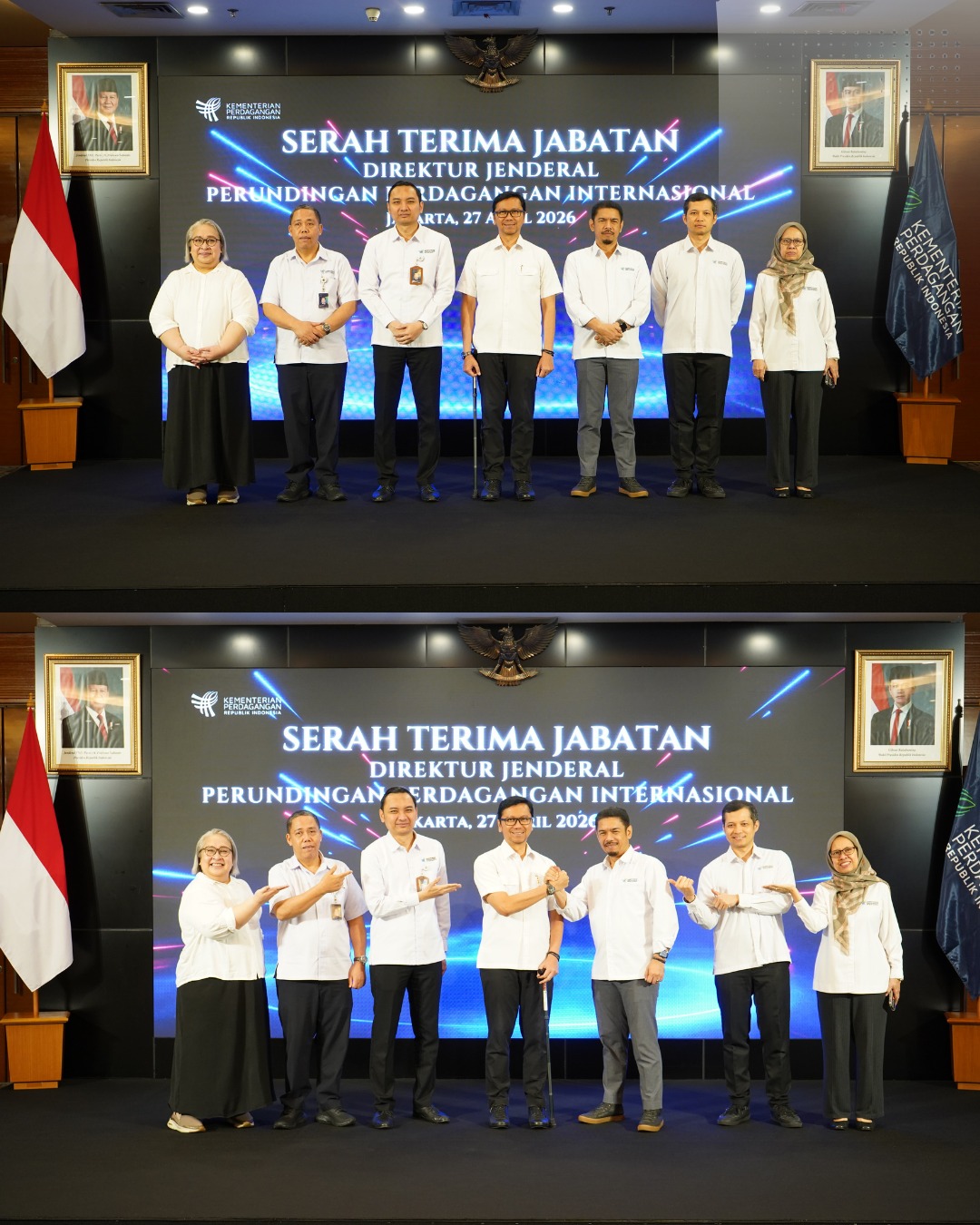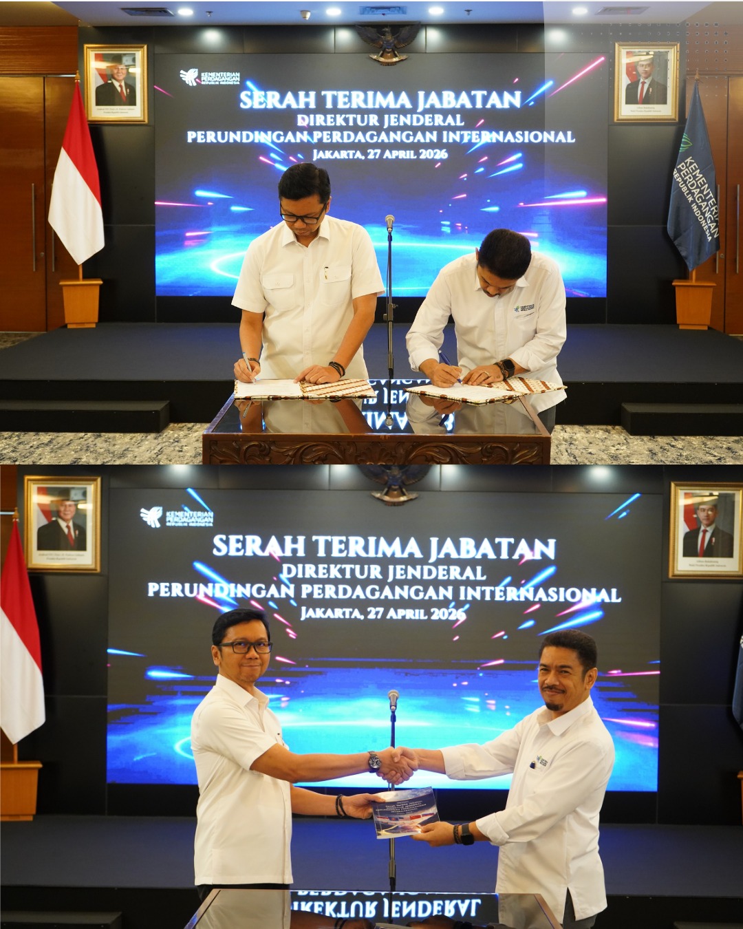 Senin (27/4) Serah Terima Jabatan Pimpinan Madya dan Pratama di Lingkungan Direktorat Jenderal Perundingan Perdagangan Internasional (Ditjen PPI), Kementerian Perdagangan dilaksanakan di Auditorium Kemendag. Jabatan Dirjen PPI yang baru diisi oleh Bapak Johni Marta yang sebelumnya dipimpin oleh Bapak Djatmiko Bris Witjaksono