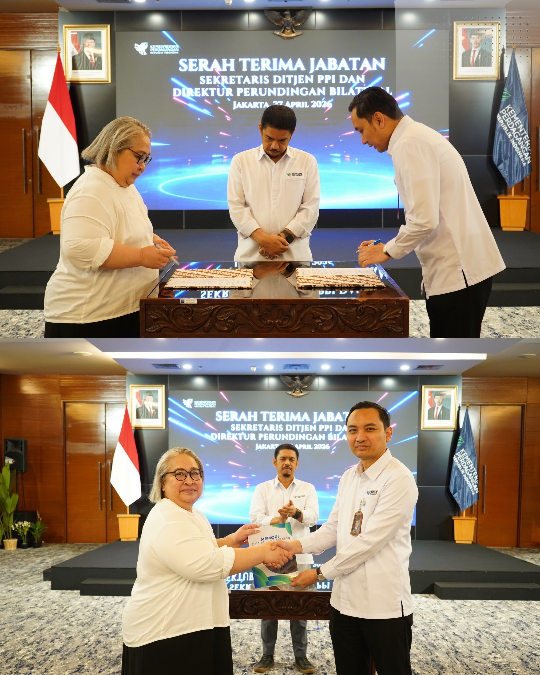 Selanjutnya, jabatan Sesditjen PPI diisi oleh Bapak Danang Prasta Danial yang sebelumnya diisi oleh Ibu Basaria Tiara L. Gaol. Dan terakhir, serah terima jabatan Direktur Perundingan Bilateral dari Bapak Danang Prasta Danial kepada Ibu Basaria Tiara L. Gaol.